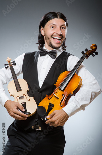 Funny fiddle violin player in musical concept