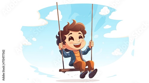 funny kid playing in a swing on a white background.