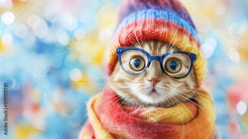cat, winter, hat, foulard, goggles, colourful, cute, funny, surprised, ginger, adorable, cat, kitten, whisker, fur, warm, cosy, fashionable, trendy, style, accessory, clothing, headwear