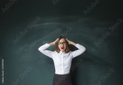 woman, mad, shouting, despair, adult, blackboard, people, black, female, expressing, emotion, shock, irritated, girl, upset, gesture, mouth, scared, anger, background, board, feeling, isolated, blackboard, emotional, expression, frustration, stress, studio, stressed, portrait, thought, crazy, young, angry, standing, person, screaming, loud, yelling, negativity