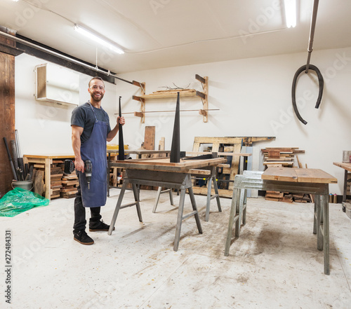 entrepreneur, business, carpenter's shop, wood, visionary, team, success, standing, pride, potential, portrait, owner, leadership, hip, determination, creative, confidence, carpenter's shop, bright, black man, beard, apron, blue-collar, small business, brown hair, workbench, caucasian, white, man, male, person, people, adult, adult, 20s, young adult, young adult, young person, grown-up