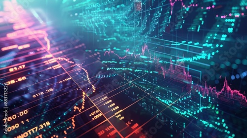 three-dimensional, digital, video game, art, futuristic, stock exchange, graph, soaring, finance, investment, technology, financial district, trading, digital artwork, graphic design, high technology