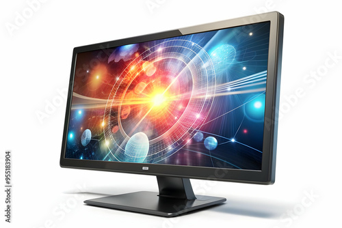 Futuristic 3D Desktop Monitor with Surrounding Holographic Notifications - Technology Concept for Copy Space and Innovation