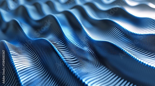Futuristic abstract 3D render of blue digital waves with flowing lines and reflective textures, symbolizing technology, data transmission, innovation, and modern digital communication systems.