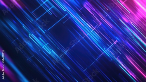 Futuristic abstract background featuring neon glowing techno lines in vibrant blue hues