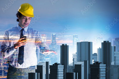 Futuristic architect doing urban planning