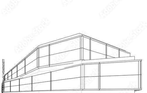 Futuristic Architecture Sketch - Abstract Building Facade - Geometric Perspective - Vector Illustration