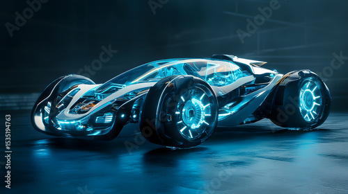 Futuristic Car with Glowing Blue Accents and Advanced Design