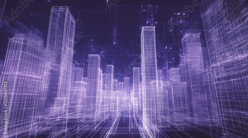 Futuristic city digital wireframe, abstract urban landscape, technology