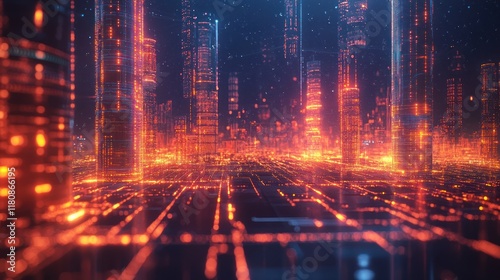 city, futuristic, digital, night, datum, technology, glowing, concept, background, orange, red, neon, abstract, network, city landscape, future, urban, light, illumination, energy, connection, innovation, progress, modern, design, graphic, illustration, scene, view, landscape, texture, pattern, space, particle, wireframe, grid, virtual, reality, science, fiction, artificial, intelligence