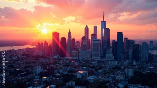 city, skyline, sunset, building, skyscraper, futuristic, modern, architecture, urban, light, tower, downtown, evening, dusk, landscape, glowing, metropolis, silhouette, cloud, illumination, street light, road, highrise, city landscape, horizon, sun, twilight, scene, dramatic, fantasy, realism, artistic, innovation, design, sky, orange, red, yellow, ambient, realistic, development, infrastructure, planning, future, construction, engineering, gloaming