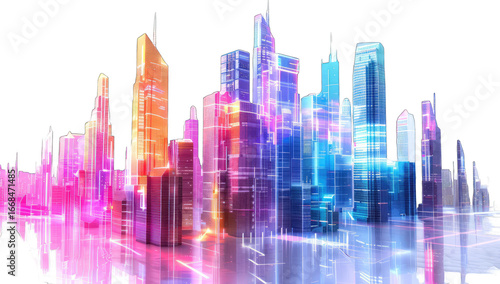 city, skyline, futuristic, digital, colourful, abstract, building, skyscraper, urban, vibrant, modern, geometric, technology, bright, neon, light, shape, three-dimensional, perspective, coloured, glasses, structure, art, design, dynamic, pixel, line, glow, energy, motion, reflections, graphic, image, rendering, architecture, innovation, progress, light, city landscape