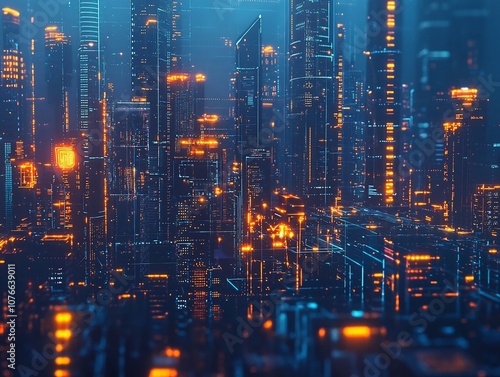 city, skyline, city landscape, skyscraper, architecture, urban, futuristic, modern, financial, business, technology, finance, datum, transaction, network, connectivity, illumination, light, glow, night, neon, panorama, vista, illuminated, bright, energy, economy, commerce, industry, development, growth, metropolis, highrise, tower, district, infrastructure, intelligent, integrated, digital, automation, security, cashless, money, exchange, investing, trading, capital, banking