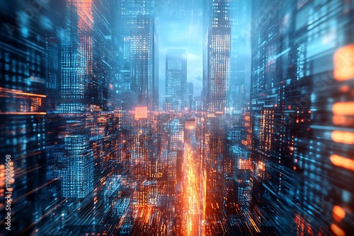 Futuristic Cityscape with Digital Data Streams. Concept of technology, urban, and innovation.
