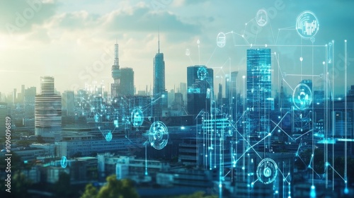 city, city landscape, skyscraper, building, network, digital, technology, futuristic, modern, urban, metropolis, datum, information, connection, communication, innovation, progress, growth, development, infrastructure, smart, intelligent, system, interface, overlay, graphic, design, abstract, concept, illustration, background, future, global, earth, line, point, node, connection, link