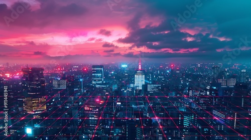 city, city landscape, metropolis, urban, futuristic, neon, grid, network, connection, technology, digital, abstract, modern, architecture, skyscraper, building, light, night, evening, dusk, twilight, sunset, sky, cloud, pink, blue, vibrant, colourful, glow, pattern, design, background, wallpaper, graphic, illustration, art, concept, future, innovation, progress, growth, urban development, globalisation, communication, cyberspace, web, datum, information