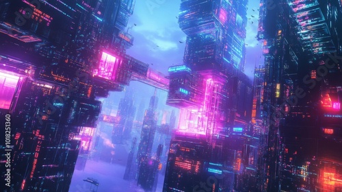 city, futuristic, neon, light, sky, building, digital, art, city landscape, urban, architecture, glowing, abstract, design, modern, technology, concept, illustration, graphic, night, scene, vibrant, colours, pink, blue, purple, orange, yellow, red, green, dark, light, shadow, cloud, space, future, fantasy, dream, perspective, view, high, tall, window, structure, detail, pattern