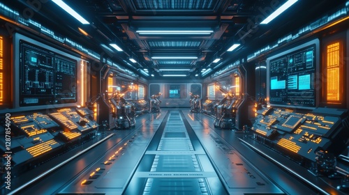 futuristic, technology, robot, science fiction, interior, lighting, machinery, monitor, screen, innovation, automation, digital, programming, advanced, high technology, workspace, science fiction, darkness, panel, console, circuitry, electronic, interface, space, science, robotic, design, architecture, environment, industry, datum, system, artificial intelligence, control, cybernetic