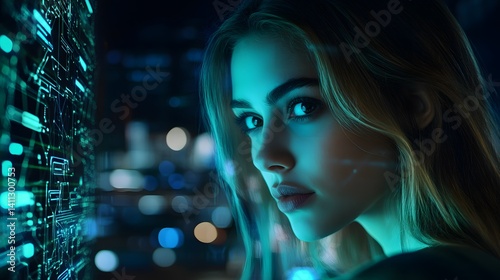 futuristic, cyber, security, network, interface, glowing, design, graphic, illustration, creative, visual, contemporary, vibrant, detailed, stylish, sleek, science fiction, innovative, dynamic, secure, high technology
