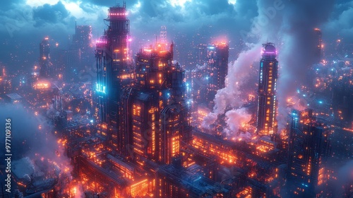 city landscape, futuristic, neon, skyscraper, night, science fiction, high technology, skyline, urban, light, digital, technology, smoke, building, modern, architecture, fantasy, dark, glowing, metropolis, city, cloud, tower, industrial, tech, neon light, cyber, fiction, city landscape, future, city lights, fog, atmosphere, cinematic, dramatic, building, sky, sunset, skyscraper