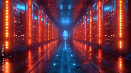 technology, datum, center, corridor, futuristic, light, orange, blue, glowing, high technology, modern, atmosphere, storage, network, infrastructure, digital, innovation, presentation, website, booklet, advertisement, cutting edge, technically, server, rack, machinery, hardware, system, connection, cable, processing, information, security, engineering, equipment, room, science fiction, sleek, design, interior, space, industry, electronic, computer, information technology, communication, environment