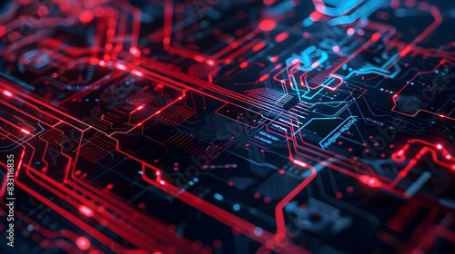 Futuristic Digital Circuit Board with Glowing Cyber Connectivity