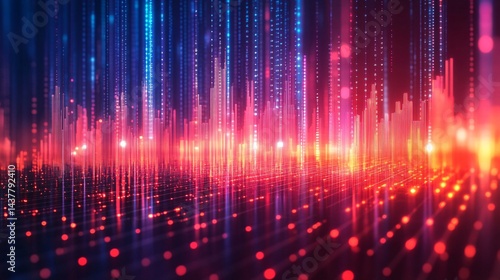 futuristic digital data visualization with bright neon lights and abstract technology background