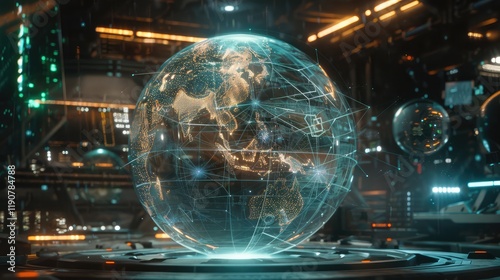 Futuristic Digital Globe in Modern Sci-Fi Setting