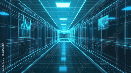 hallway, futuristic, digital, network, blue, glowing, design, corridor, structure, graph, technology, virtual, architecture, rendering, interior, perspective, modern, abstract, empty, innovation, cyberspace, connection, grid, illustration, visualisation, wireframe, space, tunnel, communication, information, datum, analysis, background, presentation, science, fiction, future, art, texture, light, geometric, computer, generated, neon, bright, diagram, schematic
