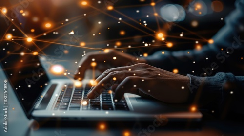 digital, laptop, innovation, network, abstract, technology, hand, typing, futuristic, communication, cyber, datum, connection, glowing, cyberspace, online, interactive, modern, workspace, virtual, computing, code, business, tech, electronic, design, creativity, progress, conceptual, interface, node, pattern, web, information, energy, light, keyboard, detail, connectivity, visual
