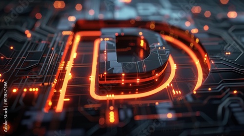 digital, letter, alphabet, technology, futuristic, abstract, design, graphic, three-dimensional, render, circuit, board, neon, glowing, orange, light, datum, code, interface, network, cyber, hardware, innovation, electronic, electronic, science, future, progress, web, artificial, intelligence, graphic, computer, programming, minimal, style, dark, modern, creative, tech