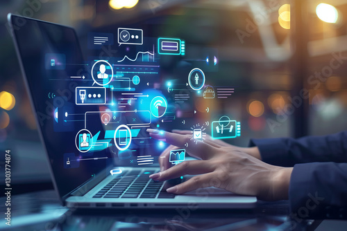 Futuristic Digital Technology, Artificial Intelligence, Cybersecurity, Big Data, Machine Learning, Cloud Computing, Business Innovation, Network Connectivity