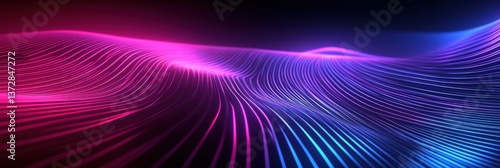 Futuristic dynamic background with neon lines curving in dark abstract space showcasing elegant minimalism