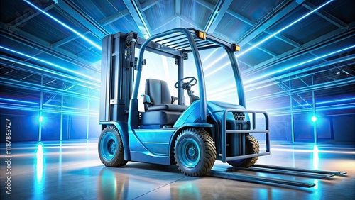 Futuristic Electric Forklift with Glowing Blue Accents on Clean White Background for Innovative Industrial Imagery