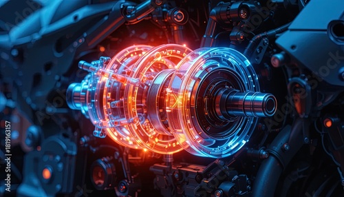 engine, futuristic, technology, innovation, machine, mechanical, gear, energy, power, design, science, fiction, science fiction, metal, metallic, industry, engineering, automotive, transport, component, part, system, structure, detail, modern, abstract, concept, future, progress, development, research, equipment, machinery, industrial, manufacturing, connection, precision, complex, light, glowing, vibrant, blue, orange, chrome, dark