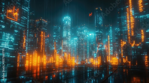 trading, stock exchange, city skyline, finance, digital display, investment, neon light, city landscape, city lights