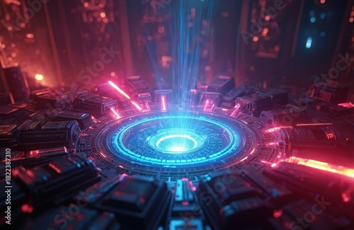 futuristic, technology, energy, reactor, fusion, core, digital, light, blue, glow, science, power, innovation, cyberspace, machine, system, abstract, tech, future, computer, intricate, pattern, circuit, electronic, datum, network, red, pink, neon, laser, beam, ray, dynamic, vibrant, cyber, ai, artificial intelligence, quantum, computing, advanced, high technology, modern, industrial, design, dark, background, illustration, concept, wallpaper