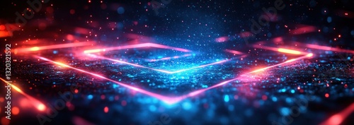 Futuristic Geometric Spiral Abstract Art Neon Blue Pink Tunnel Design