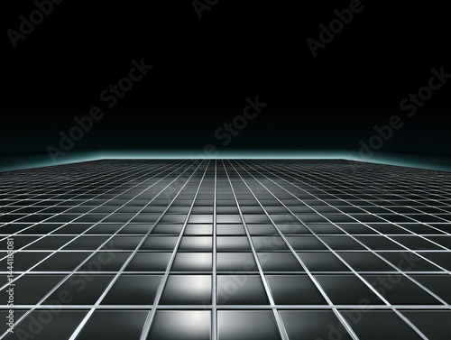 Futuristic grid floor with reflective surface.