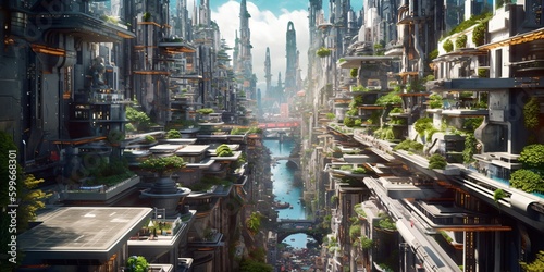 futuristic high-tech city with advanced infrastructure, science fiction cityscape, fictional landscape created with generative ai