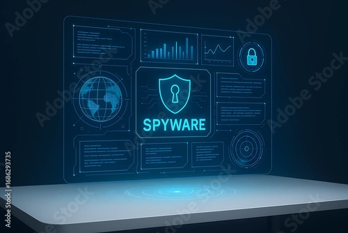 Futuristic Holographic Spyware Interface Projected Above White Table
