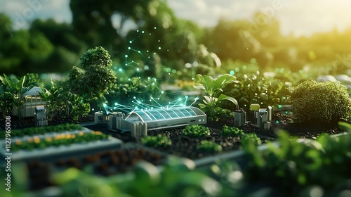 futuristic, integrated, farm, interconnected, fish, crop, field, glowing, network, line, resource, management, copy, space, sustainable, agriculture, technology, innovation, automation, future, efficient, environmentally friendly, renewable, green, energy, hydroponics, aquaculture, precision, farming, smart, datum, visualisation, landscape, environment, nature, ecology, food, production, greenhouse, cultivation, control, system, ecosystem, aerial
