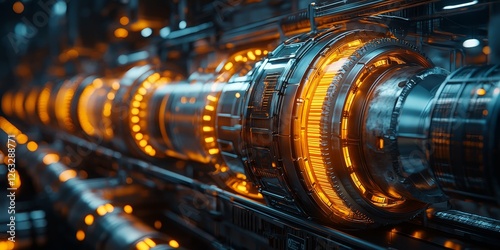 Futuristic Interconnected Pipes and Gears with LED Lights