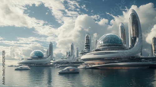futuristic, metropolis, architecture, ocean, scenery, cloudy, sky, city, skyline, water, future, urban, innovation, design, structure, technology, transport, aquatic, vessel, floating, city landscape, building, modern, development, utopia, progress, dream, civilisation, construction, engineering, science, science fiction, waterfront, seascape, environment, sustainable, resource, energy, clean, conservation, preservation, harmony, balance