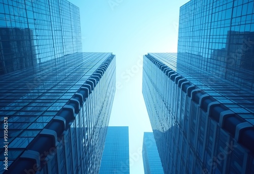 skyscraper, architecture, futuristic, city, metropolis, urban, skyline, building, background, blue, reflective, modern, business, corporate, booklet, presentation, design, branding, financial district, abstract, landscape, perspective, graphic, high technology, digital, identity, visualisation, concept, vector, illustration, poster, banner, print, digital artwork, artwork, design element, visual, aesthetic, commercial, professional, clean, minimalist, stylish