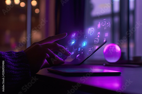 Futuristic Mobile Interface Woman Interacting with Holographic App Icons