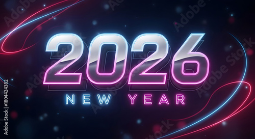 2026, new year, new year's eve, celebration, futuristic, neon, glow, light, swirling, particle, abstract, background, digital, modern, design, event, countdown, bright, vibrant, energy, excitement, festive, holiday, future, year, number, illumination, dark, blue, pink, red