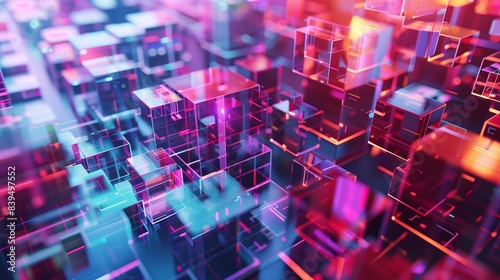 Futuristic Pixelated Abstract D Render of Digital Voxel Cubes. Concept Abstract Art, Digital Design, Futuristic Technology, Voxel Cubes, 3D Render