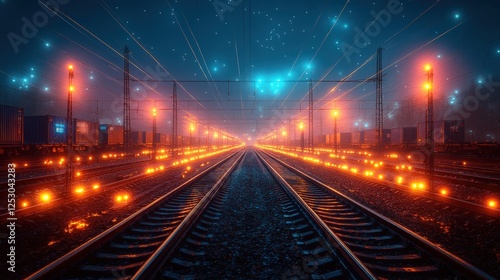 railway, night, light, travel, futuristic, star, transport, technology, landscape, glow, train, track, illumination, scenery, urban, perspective, journey, adventure, motion, energy, connection, distance, exploration, horizon, design, atmosphere, ambience, vibrant, line, pattern, visual, modern, nightscape, rail, industrial, aglow, environment, twilight, city, abstract, beauty, dynamic, structure, rythm, depth