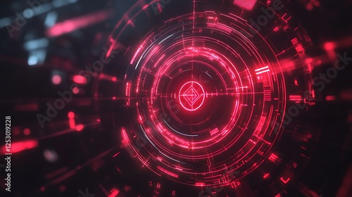 futuristic, digital, interface, red, target, technology, cyber, science fiction, abstract, glowing, high technology, virtual, design, modern, display, circular, system, matrix, artificial intelligence, innovation, neon, security, analysis, tracking, datum, code, cyberspace, network, radar, hologram, tech, cybernetic, precision, scanning, advanced, control, surveillance